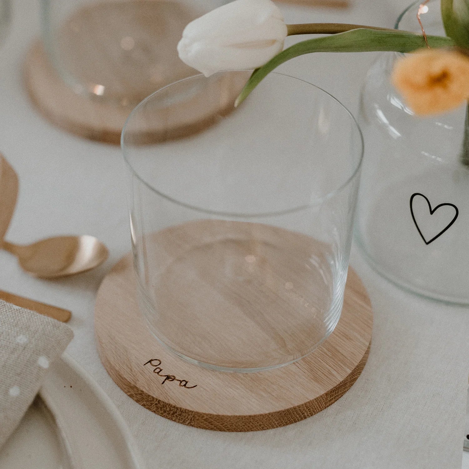 De Papa-onderzetter heeft het handgeschreven woord Papa op de voorkant.